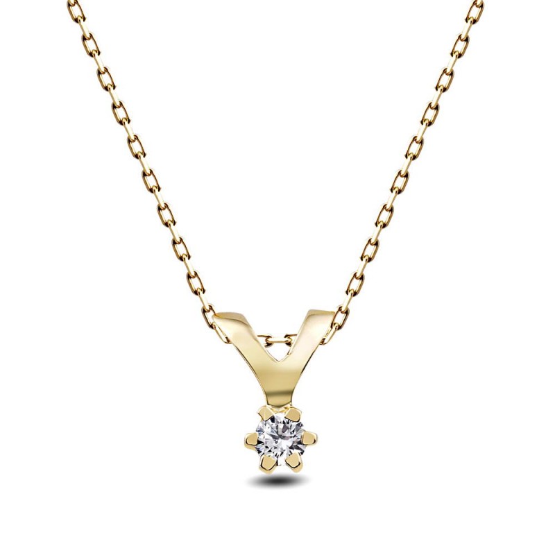 0,03 Crt 6 Prong Diamond -10 K Yellow Gold Necklace